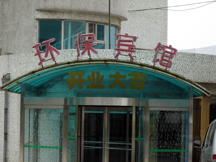 ![]() 环保宾馆左侧后窗一楼、四楼钢筋固定的窗户 | ![]() 环保宾馆正门进门后左拐是关押大法弟子的房间 |