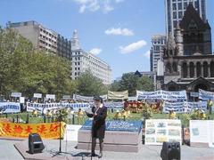由于有近一百名来自大陆器官移植学界的医生和研究人员出席这项学术会议,法轮功学员举行集会,高举抗议横幅和标语,向路人发送传单资料,进行抗议,希望世界器官移植协会和国际医学界关注此事。