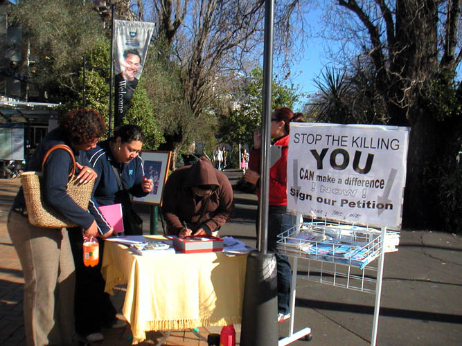 上图中这位在新西兰长大的学生,是奥克兰大学的研究生,准备写有关历史研究的论文,看了摄影展后他想从共产党的历史这个角度写中共为什么要迫害法轮功这群信仰真、善、忍的好人,并且惨无人道的活摘法轮功学员的器官牟取暴利。法轮功学员认真的告诉他:你好好看看《九评共产党》,就会了解共产党邪恶的历史,就能写的出来了。他表示一定要好好读《九评共产党》,跳出老套的框框来完成这篇论文。他还签名呼吁尽早结束中共对法轮功的残酷迫害。