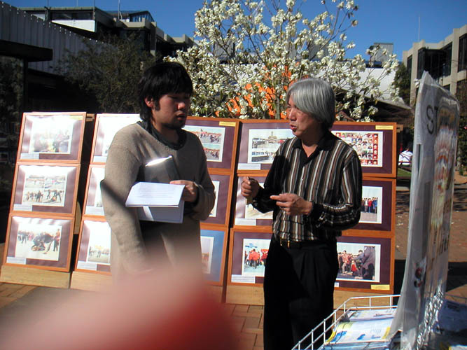 摄影展期间,一个中国留学生拒绝听法轮功被中共迫害的真相,还将摄影照片的展板踢倒在地上,当场被几位有正义感的观众看到抓住,马上制止,还要帮助作证,要办摄影展的学员把那个留学生告到警察局处理,让政府遣送他回国,不准他在奥克兰大学留学。但法轮功学员们本着真、善、忍的信念,希望再给他改正的机会,让他明白真相,并没有把他告到警察局,最后他终于向摄影展的学员道歉。