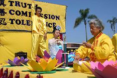 ![]() 法轮功学员的游行队伍 | ![]() 法轮功获最佳创作奖 |