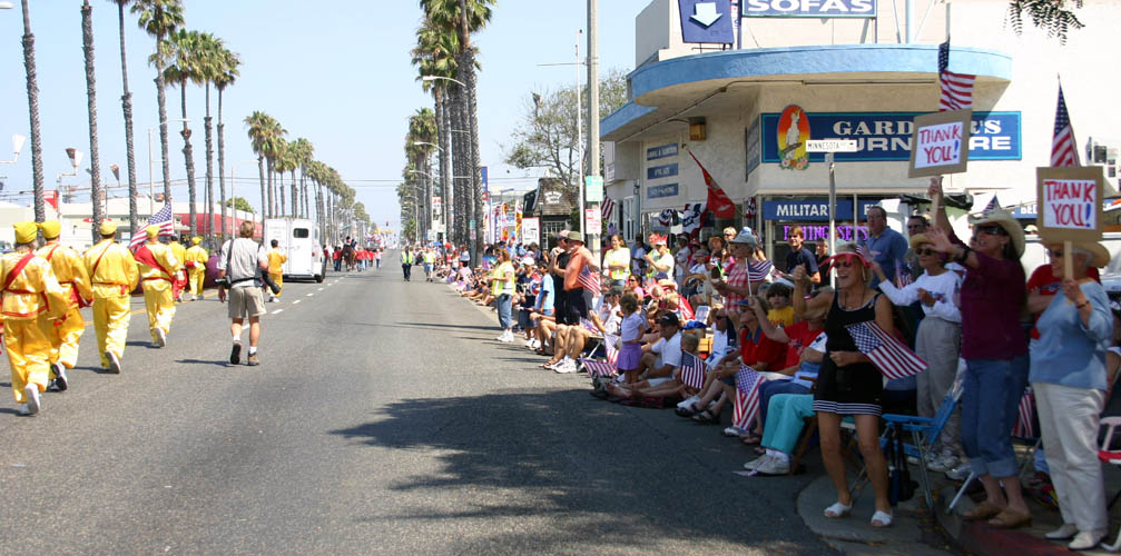上午10点左右,游行正式开始前,主办者送来了一个漂亮的奖杯——原来经过游行前的项目评审,法轮功学员获得了这次游行的最佳创作奖。这是法轮功学员们第三年参加海边市的独立日游行,学员们的游行队伍包括大型“法轮大法”横幅、花车、腰鼓队和舞蹈队。法轮功学员们的队伍所经之处,沿途观众不断的鼓掌、并向他们挥手表示欢迎。