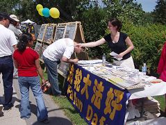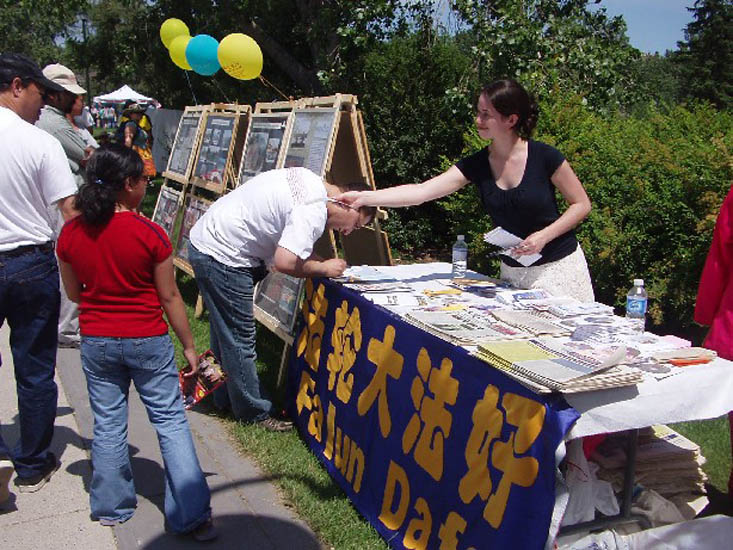 【明慧网2006年7月3日】2006年的7月1日是加拿大139年国庆日,卡尔加里市中心的王子岛公园举行了盛大的国庆活动。当地的法轮功学员申请了展位,借此机会向广大市民展现法轮大法的美好与中共对法轮功修炼人的残酷迫害