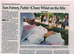图片报导中说,星期五(7月21日),由自由之家、法轮大法(学会)、法轮功之友在国会山谴责中共摘取其本国公民的器官并焚尸灭迹。游人观看模拟展示。