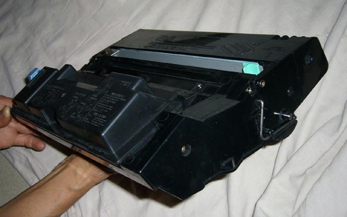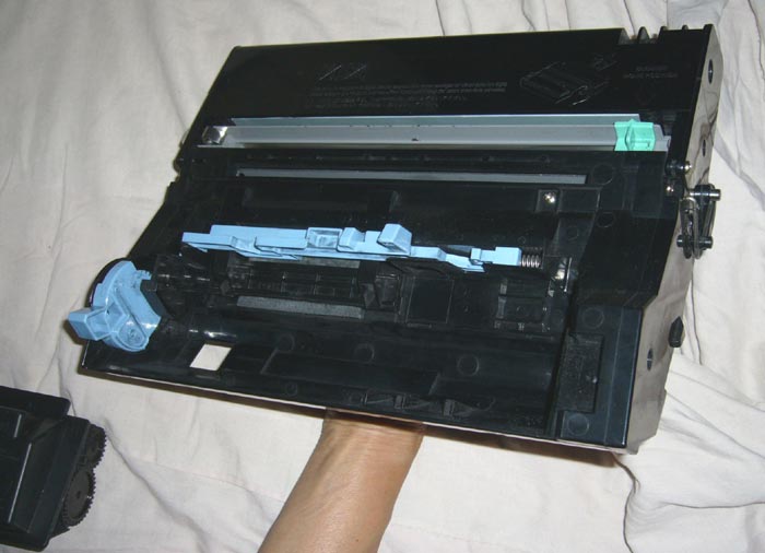 此款机器是带有计数芯片的,但是破解方法很简单,只要将硒鼓侧盖打开,取出计数芯片,再装上就可以了(具体见破解图)。