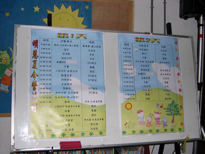 明慧夏令营于2006年7月1、2两日假苗栗通霄圆山休闲农场举办,镇上小朋友计有92位报名参加。此次活动由台湾明慧教育学会,结合当地机关团体苗栗县政府、通霄镇公所、通霄发电厂、中油公司及社区团体通霄妇女会、红枭童军团共同主办。活动宗旨是以活泼的游戏进行方式,启发小朋友善良本性,在日常生当中学习做个符合“真善忍”的真正好人,每个小朋友都受益良多。