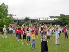 这次活动承蒙法轮功学员、红枭童军团鼎力相助,活动才能得以顺利进行,举办地点圆山休闲农场是一所自然科学的户外学习教室,也是人与自然生态互动的特殊景观。在这里可以体会自然的呼唤,重拾牛羊散落,鸡犬相闻,偶闻山歌与村笛,感受乡村田园、牧地景色的脉动,还可体验通霄在地农村自然之旅,加上丰富紧凑的课程设计,让每个孩子载着满满的收获回家,大家还互相邀约明年再来参加!