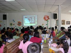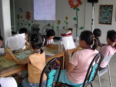 动画欣赏科学新知,告诉小朋友平时按“真、善、忍”做好人,在家做个好孩子,在学校要尊敬师长、友爱同学。动画欣赏结束随即做反省单调查填写,每个小朋友都写着自己有很多行为不合乎“真善忍”标准,以后一定要好好改过来,做一个真正的好人。