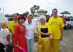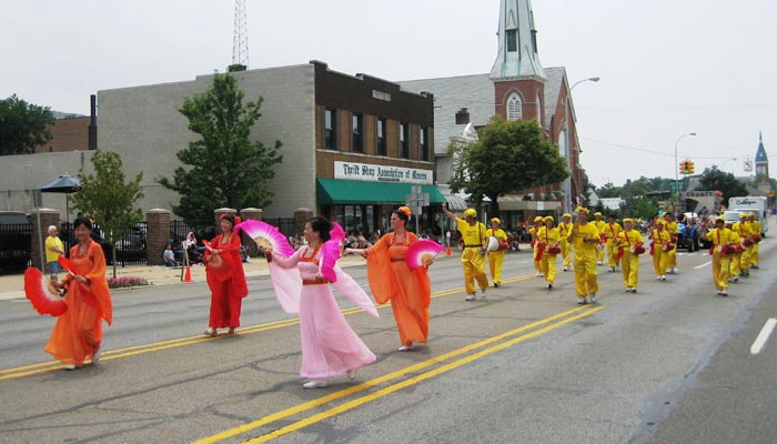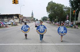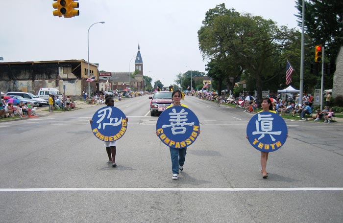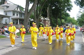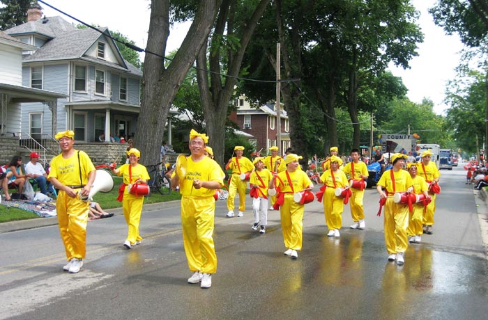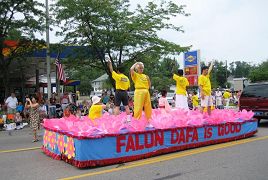 下午一点开始,法轮功学员的横幅、“真善忍”展板、炼功花车、腰鼓队、仙女舞展现在上万名民众的面前。在两英里的游行路程上,学员们向民众发放了真相传单和报纸,向善良的美国民众介绍法轮大法的美好,同时揭露中共恶党迫害法轮功修炼者的真相,特别是中共活摘法轮功学员人体器官的暴行。