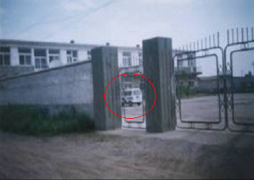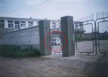 ![]() 图1 洗脑班的远观 (一幢二层小楼,周围是不知名的建筑) | ![]() 图2 洗脑班南墙和二楼的近观 (南墙上布满了碎玻璃) |