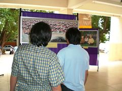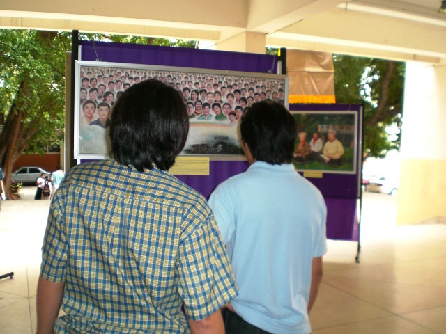 画展从每天上午九点开始到下午四点结束。展出的第一天,学员们表演了腰鼓、仙女舞和五套功法,并向前来观看的人们讲解画展内容和法轮功真相。