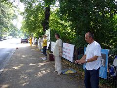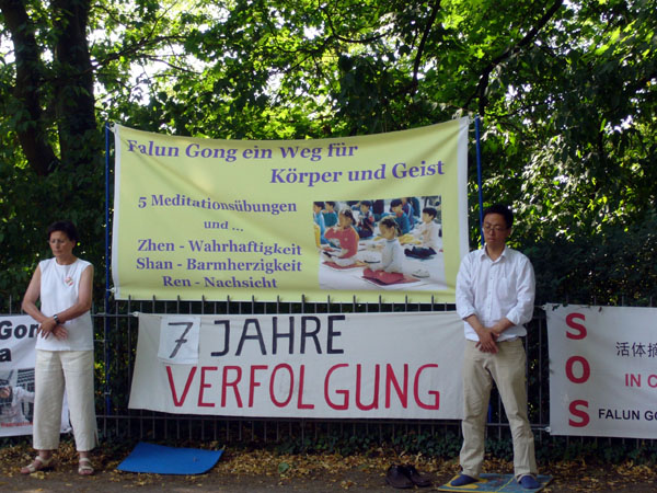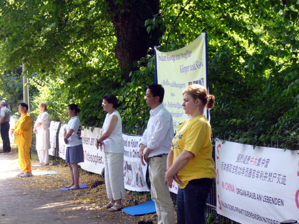 法轮功学员柏林中使馆前抗议迫害(图)