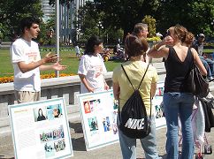 来自法国、坦桑尼亚和斯堪的纳维亚半岛的游客,听到此消息后都感到非常震惊。一位美国妇女表示从未听说过这样的事情,并希望我们能说服联合国,对此进行必要的全面调查。民众都很愿意接受相关资料,许多在校学生则认真观看迫害真相的图片。