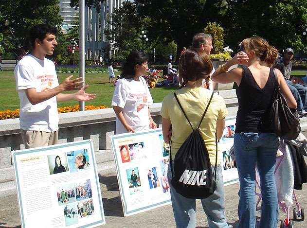 【明慧网2006年8月21日】8月16日,来自维多利亚(Victoria)市的法轮功学员在加拿大议会大厦举行新闻发布会,宣布开始环温哥华岛的讲真相汽车之旅。学员们计划在汽车之旅期间,拜访联邦、省和市三级政府官员,并呼吁每一位加拿大居民,都来谴责活摘法轮功学员器官的罪恶。