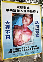 奎因在谈到这些照片时说,“有些人会受到障碍,但我们不得不使用这样令人震惊的图片使人们清醒过来。”奎因还说中共正在迫害法轮功学员,摘取他们的器官出售。