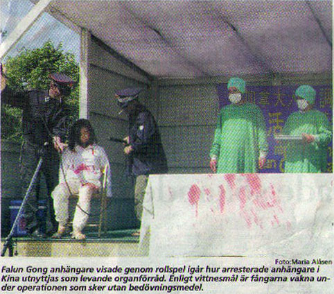 ![]() 法轮功学员演示中共活体摘取法轮功学员器官 |