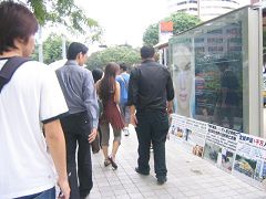 武吉士观音庙是我们常去的地方。这个观音庙有几十年的历史,加上周围的商店林立,交通方便,吸引全岛众多华人到来,还有许多走江湖人士,如跌打、卖膏药、算命的等等,常吸引一大堆人群围着观看。当时法轮功学员把展板放在庙宇附近的两排木制栏杆上,就马上吸引了很多民众,有看到中共迫害法轮功的残酷而震惊的,有被谎言欺骗,不相信中共会如此对待老百姓,而暴跳如雷的。法轮功学员面对这样的人讲真相,马上围来一大群民众,你一句我一句的攻击法轮功学员,侮辱的言语,不堪入耳的粗话都能从这些人的口中发出。记的有一次法轮功学员被民众用侮辱话骂的很厉害,围了很多人,你一句他一句,学员忍住没吱声,结果另一些人看不过眼,叫那些人不要这样对待法轮功学员,他们争吵起来,最后两群人很快就散了。有的学员还被民众打,但法轮功学员没有还手,继续讲真相,警察时不时到那里。
