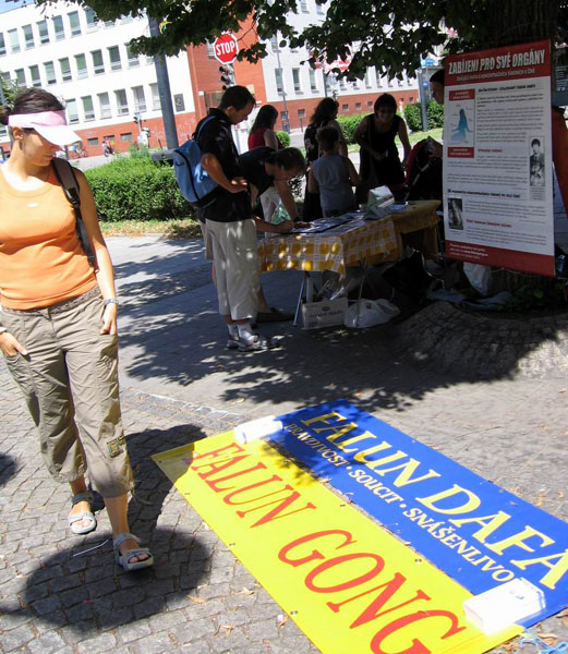 “我是从Ceske Budejovice来的,我在那儿的板报上看到过(法轮功真相),这次在街上亲眼看到你们,真好。”一位过路的行人这样说。