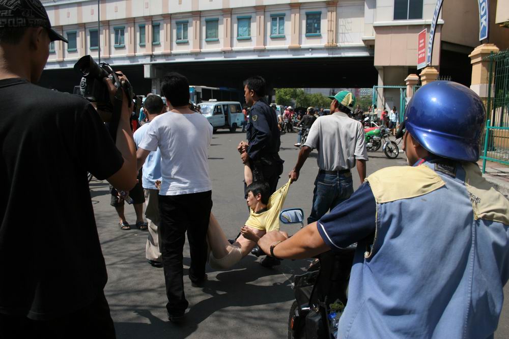 2006年8月5日,印尼雅加达唐人街再次出现骚扰当地法轮功学员合法炼功的暴力事件,数十名受中共谎言宣传毒害而仇恨法轮功的当地华裔,对十多位法轮功学员大打出手,并强行驱散了炼功。印尼美都电视台于事发几小时后在全国大范围报道了此事,并表示在全过程中,法轮功学员没有一点反抗。