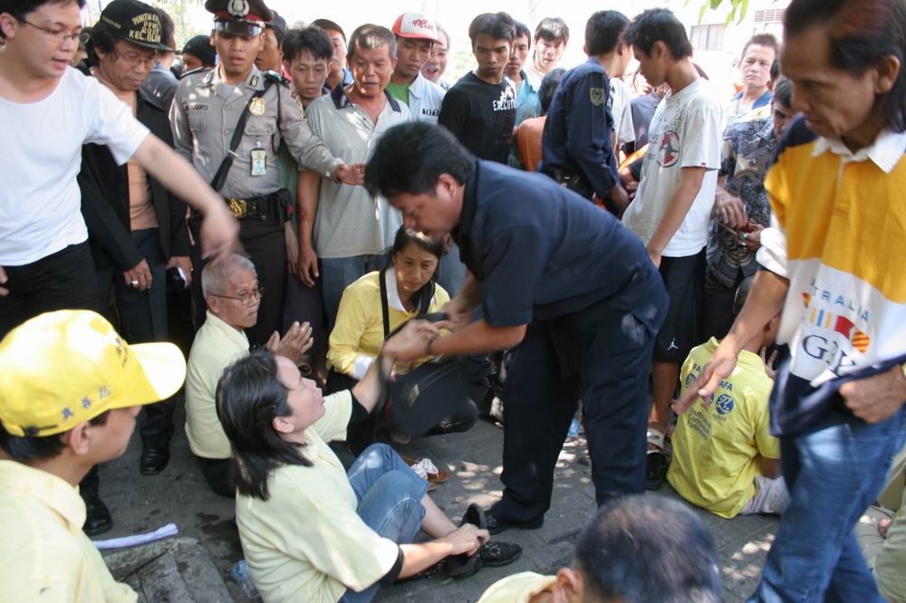 在雅加达唐人街对法轮功学员和平炼功、讲真相活动的骚扰和暴力攻击已经不是第一次了。从今年四月法轮功学员在唐人街开始揭露中共活盗器官黑幕以来,类似的骚扰事件已经数度发生,中共以谎言散布仇恨、并企图将迫害输出海外与此难脱干系。