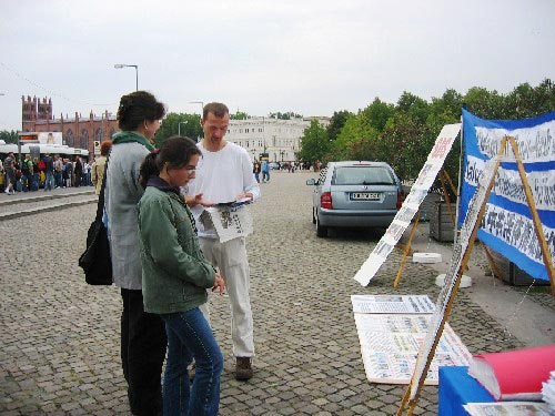 这样的大型活动会吸引大量的民众前来观赏。基于这一点,一些柏林的法轮功学员利用这一机会,走上街头,让更多的人了解法轮功在中国无辜被迫害的真相。
