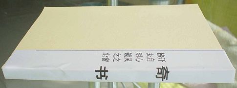 【明慧网二零零六年九月十四日】用大纪元《九评》小册子自制版(1/4 A4)(2005.4);打印后,用切纸刀具切开(切注意要齐整),用封页纸(耗材商店有售30元左右/100张A4比普通A4纸厚各种颜色的都有)做皮。厚页订书机装订,注意要将装订边戳齐,装订。如图尽量要装订边窄一些――3mm左右。