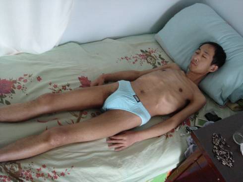 恶警们疯狂的奔雷明冲过来打他嘴巴子。又过来两恶警手里各持一根电棍,把雷明上衣和裤子扒下,然后两恶警同时电击雷明的脖子,嘴,大腿、胸部、生殖器、肛门,使人痛苦万分,惨叫不止,直到电棍没有电了。