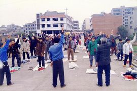 历史图片:1999年山东省胶州市民政局炼功点晨炼