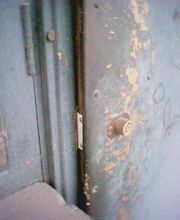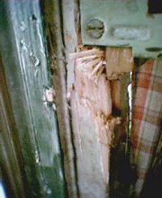 ![]() 被撬后虚掩的铁门 | ![]() 被撬后的木门 |