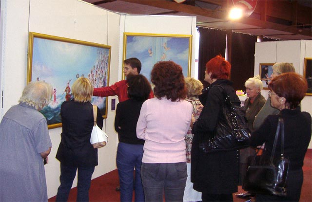 在第一天开展后,一位参观者在留言簿上写下了这样的话,“画展中的绘画表现力很强,他们表达的信息值得深思。”