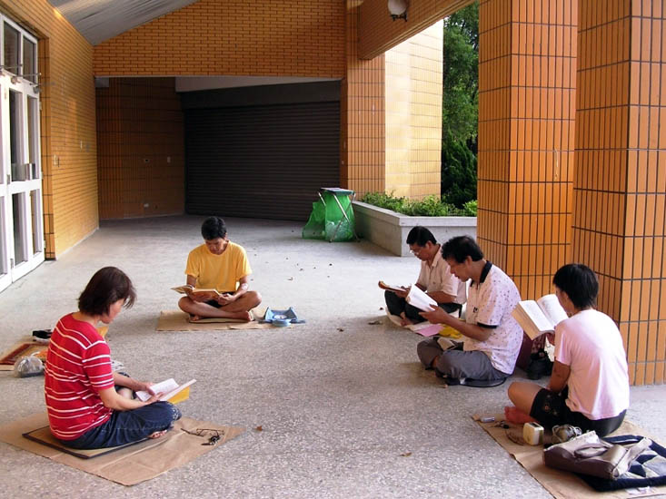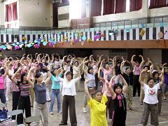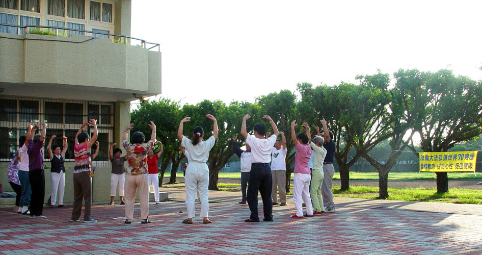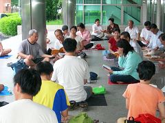 ![]() 二零零五年七月廿三~廿四日虎尾高中教师研习营的学员在炼功 |