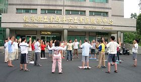 炼功时间是每天早上五点半到八点十分,五套功法都炼完后,会再加炼第一套功法。目地是让前来户政事务所更换身份证的居民们有机会看到优美的法轮功功法。星期六则只炼动功一小时,利用另一小时学法交流。