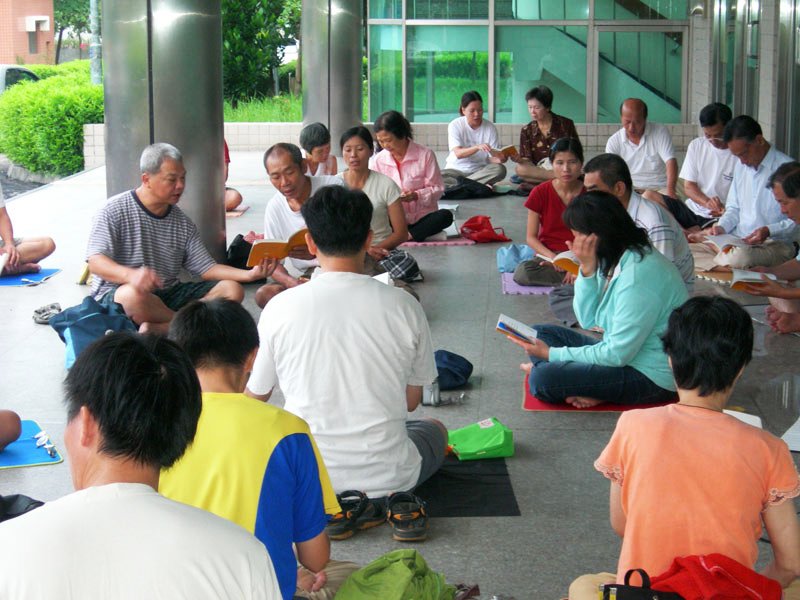 各地炼功点上的学员有大学的教授、校长、老师、老板、家庭主妇、工友、年轻的、年纪大的、因炼功点的轮动,大家齐聚一起,席地而坐,没有常人的职位高低之分,大家都是从法理上互相交流,谈心得体会,带动大家在法上的认识,也触动不少学员走出来,达到了整体提升,整体升华。