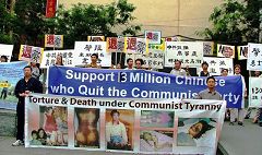 组织者介绍:本次游行的目的是向公众再次揭露中共的邪恶,中共不仅仅迫害法轮功学员,而且明目张胆的抓捕为法轮功学员说话的正义律师高智晟。中共实际上是在道德上向全世界宣战,看看它们这样的邪恶,到底有没有人站出来制止它。我们必须站出来,制止这样邪恶的行径!还有一方面,虽然中共这样的邪恶,但并不能阻止人们去唾弃它,所以我们还有一个想法,就是要将超过一千三百万人退出中共这样的大事让更多的人知道。我们相信,随着人们认清中共的邪恶,人们会看到:只有真正的退出中共,才能促使它早一天灭亡,中国人才能免遭迫害,高律师这样正直的人才真正能在中国有容身之地,信仰真善忍的法轮功学员才能在中国就象在世界其它国家一样拥有和平的修炼环境。