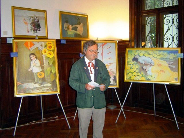 市长帕萨先生在致辞中说道:“当政治不起作用时,艺术、艺术家和知识份子就要承担起一个责任,那就是持之以恒地让人们关注对大约一亿中国人的人权迫害。女士们、先生们,我们培伊巴赫市人也可以为这件事情尽自己的一份力量。请您静静地看看这些画吧。每一幅绘画后面都有一个故事,一个在中国发生的和正在发生着的故事。这些绘画比世界上的任何一个媒体的报道都更有说服力!”