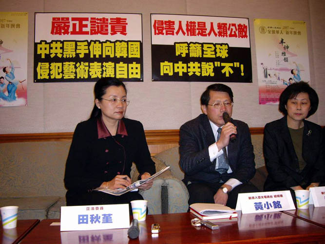 新唐人电视台台湾代表刘莺钏表示,首尔事件是中共多次打压新唐人的一个最新事件,据韩国第一大报《朝鲜日报》及韩国国家新闻通讯社《韩联社》日前报导中指出,新唐人电视台因报导中国人权丑闻而触怒中共政权。中共通过韩国外交部和文化部向韩国国立剧场施压,以取消该剧场今年六月将在中国举行的演出相威胁,而取消了新唐人电视台全球华人新年晚会首尔场的演出,韩国政府接受中共要求,并在演出前一天剧场才通知演出方,取消合同。今天除了揭露这个事情,更重要的是要让全世界进一步知道中共邪恶的真相与本质。
