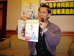 “中共居然会怕一群穿着漂亮古典服装,跳着曼妙舞蹈的一批人”,台湾新唐人国际文化学会理事长明居正手中拿着新唐人新年晚会的宣传单指着说,号称强大政权的中共害怕这个东西,这是一个什么样的政权?