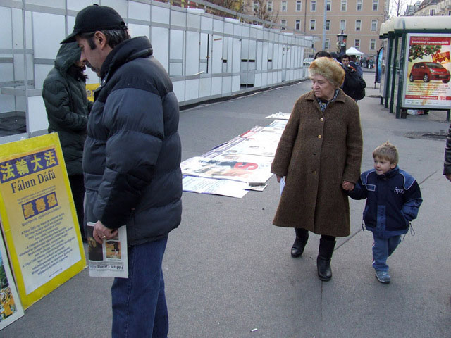 许多人停下来仔细的阅读信息展板,他们中很多人都深受感动,并对中国共产党迫害法轮大法感到不安。一位老年女士说:「这场迫害是那么可怕!你们应该将参与这场迫害的所有犯罪者缉捕,把他们都处决了」。