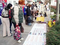 路人纷纷停下脚步,认真了解发生在中国的迫害,并签名支持法轮功