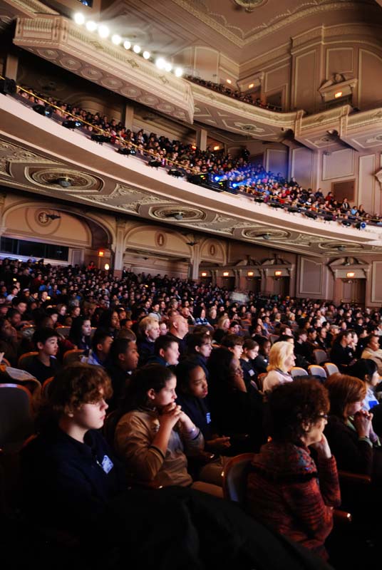 新唐人全球华人新年晚会费城场还有两场日场演出,来自宾州,新泽西,德拉华的三千五百多名学生和老师观看了演出。据大费城亚洲文化中心介绍,这次大费城地区五个郡都有学生来观看演出,加上德拉华、南泽西的私立、公立学校,共有三十多所学校。因票在一周前已订满,还有很多学校的学生想来但没来成。