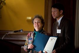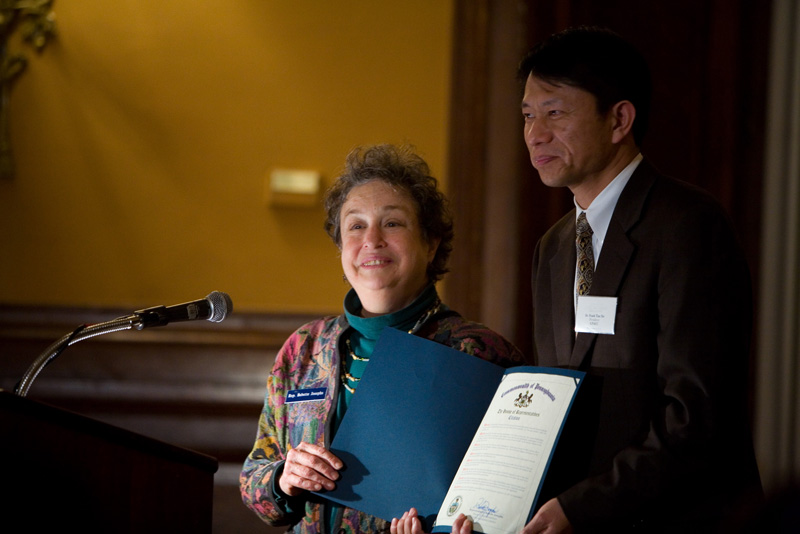 ![]() 宾州州众议员芭比特•约瑟夫(Babette Josephs)(左)为新唐人颁发褒奖状 |