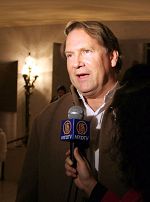 斯坦福大学古典文艺教授帕特里克•亨特博士在歌剧院大厅接受新唐人电视台记者采访。