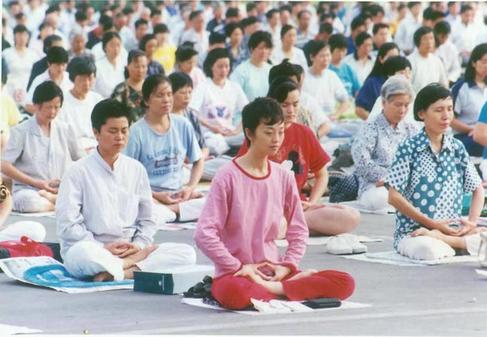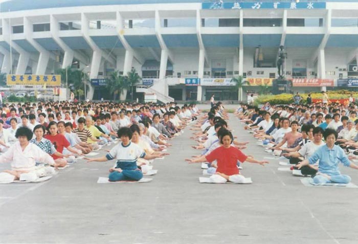 历史照片:九九年七二零前深圳法轮功学员集体炼功