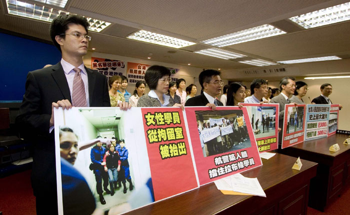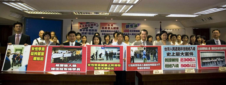 ![]() 台湾立法院于二零零七年十月一日获得过半数(一百十三名)立委跨党派联署提案,谴责港府暴力遣返台湾法轮功学员,要求港府正式道歉、提出赔偿损害。 |