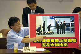 ![]() 新闻局长和行政院发言人谢志伟谴责港府对法轮功学员的不人道行为。 |