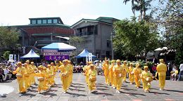 天国乐团、新唐人旗鼓队及腰鼓队,在宜兰市的游行结束后,下午转往宜兰县内工商大镇──罗东,相继在中山公园及罗东运动公园两处人群汇集处,演示功法及表演曲目,展现法轮大法的美好,受到来往民众的注目与掌声。