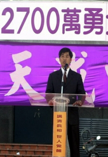 记者会主持人、宜兰县慧灯中学校长洪腾祥表示:中共建政以来残暴屠杀了八千多万中国人、镇压法轮功、活摘法轮功学员器官贩卖,并以近千枚飞弹瞄准台湾,中共如此残酷的对待自己的同胞,如今有二千七百万中国人觉醒并退党,这是一个和平解体中共的契机,所以台湾同胞应该声援他们。中共活摘法轮功学员器官贩卖的暴行,令爱好和平的台湾民众感到惊讶和愤怒。