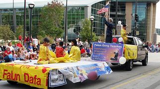 【明慧网二零零七年十月九日】二零零七年九月二十九日,美国内布拉斯加州奥马哈市法轮社团第四次受到邀请参加一年一度的“密苏里河沿岸城市牛仔节”大游行。