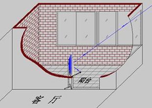 经过一段时间的摸索,我们终于成功的在朝南的阳台上接收到了新唐人卫视。如图所示,天线放在客厅与阳台的门旁边,挂上窗帘,非常隐蔽,方便以后的推广。此时信号强度74%左右,信号质量白天7~13%(能够流畅收看);晚间最高能达29%。如果不受阳台空间限制,将天线向西南角适当移动,则信号更佳。如果不是封闭式阳台,估计可以用更小。