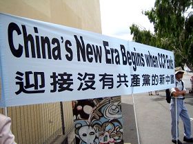 据退党服务中心一位义工表示,当天中国旅游团的数量相当之多。“声援两千八百万退党,声援党政军集体退党”,“迎接没有共产党的新中国”,“天灭中共,唤回良知”等醒目的中文横幅标语, 吸引了众多到访中国游客的目光。除了认真观看展板外,他们也拍照留念及阅读义工们提供的真相资料。
